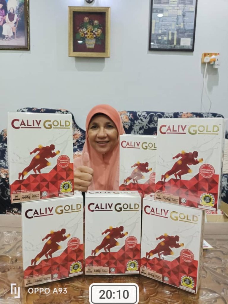 "Akak dah minum 9 kotak Caliv Gold ni & sangat membantu. Kak dah pernah tukar produk lain tapi masih lagi tak berpuas hati kesannya. Tak sama macam Caliv Gold."